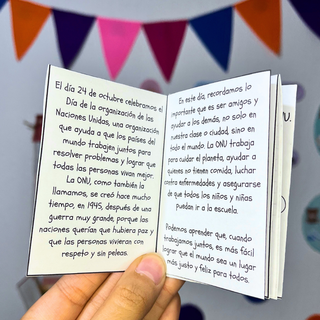 El material para conmemorar el 24 de Octubre, Dƭa de la ONU, incluye dos opciones de mini cuadernillo educativo diseƱado para que los estudiantes conozcan la importancia de las Naciones Unidas y sus valores fundamentales.