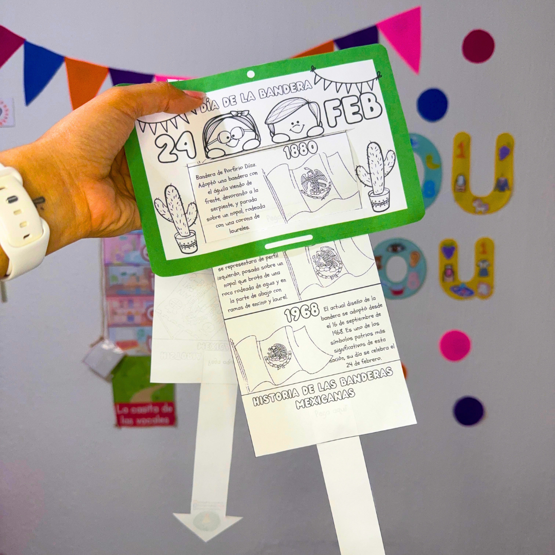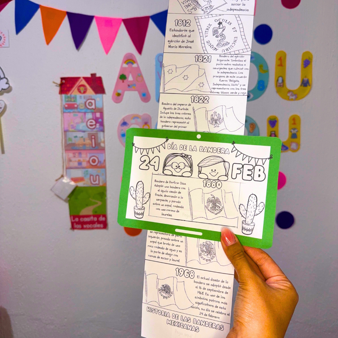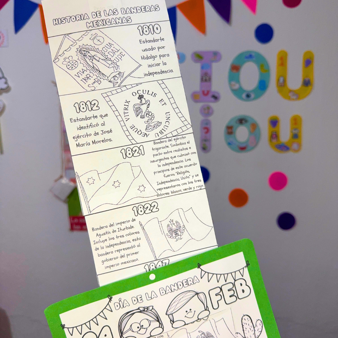 Este material didáctico te permitirá conocer la evolución de la Bandera de México a lo largo de la historia de una manera divertida e interactiva. Presentado en el formato de una tablet de papel, este recurso incluye las principales banderas que han representado al país en diferentes épocas, con una breve descripción de cada una.